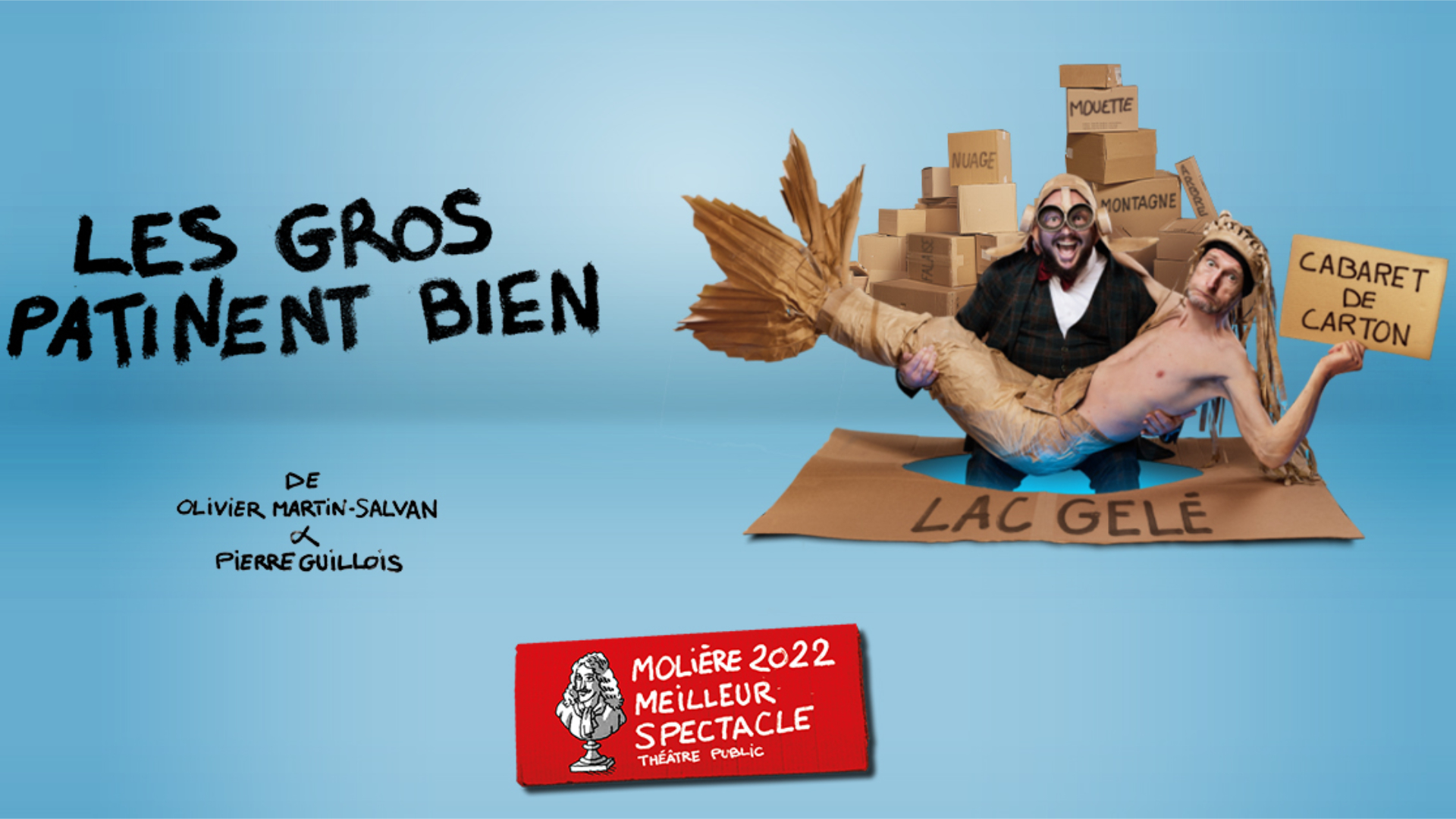Récompensé par le Molière du meilleur spectacle de théâtre public 2022, Les gros patinent bien est un chef-d’œuvre burlesque de Pierre Guillois et Olivier Martin-Salvan. Porté par un dispositif minimaliste fait de cartons, le spectacle invente un langage scénique universel mêlant humour visuel, poésie absurde et virtuosité. Un acteur immobile traverse l’Europe grâce à l’agitation frénétique de son complice, dans une épopée délirante entre cartoons et Shakespeare. Fort de plus de 600 représentations et 250’000 spectateurs, le spectacle est présenté à Lausanne le 23 janvier 2027 pour une date exceptionnelle.